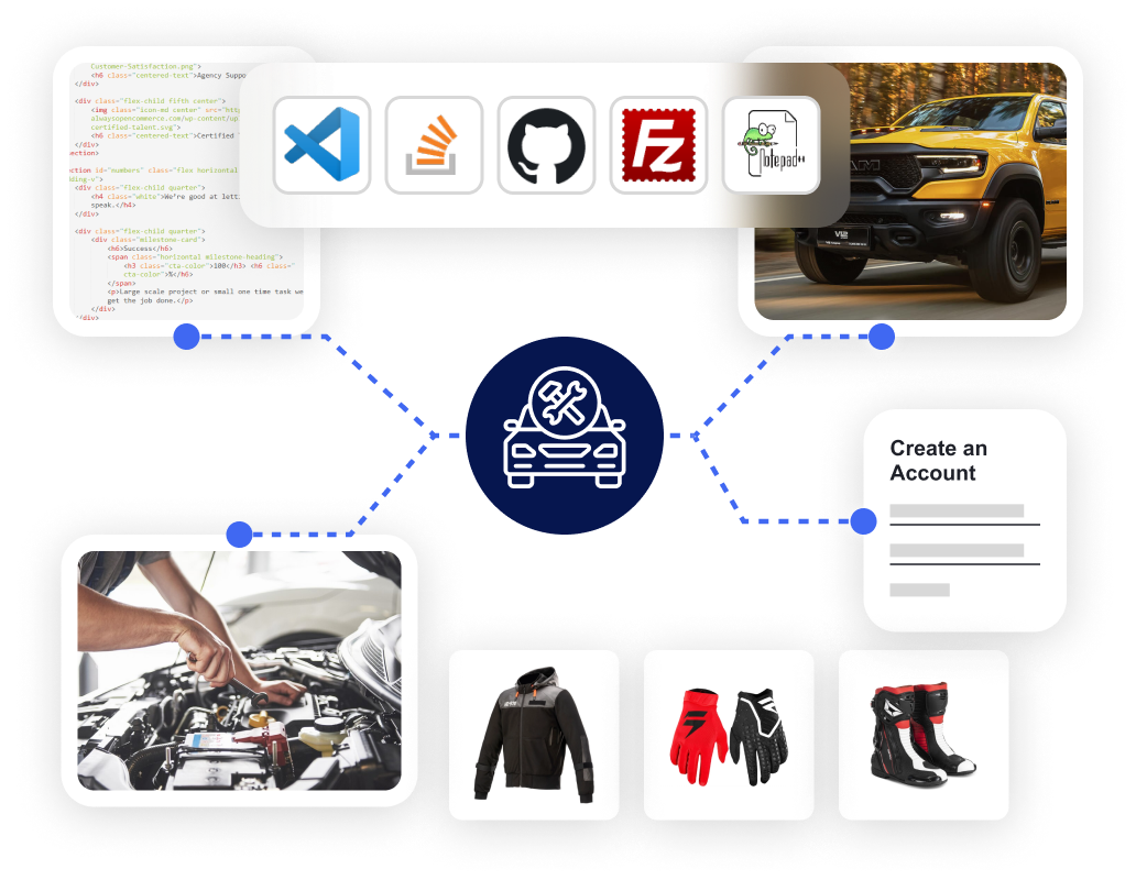 Our comprehensive suite is tailored to meet your unique needs. From custom site design that captures your brand’s essence to ecommerce integration that transforms your online presence into a lucrative sales channel. We also specialize in SEO optimization techniques designed specifically for auto-related searches.