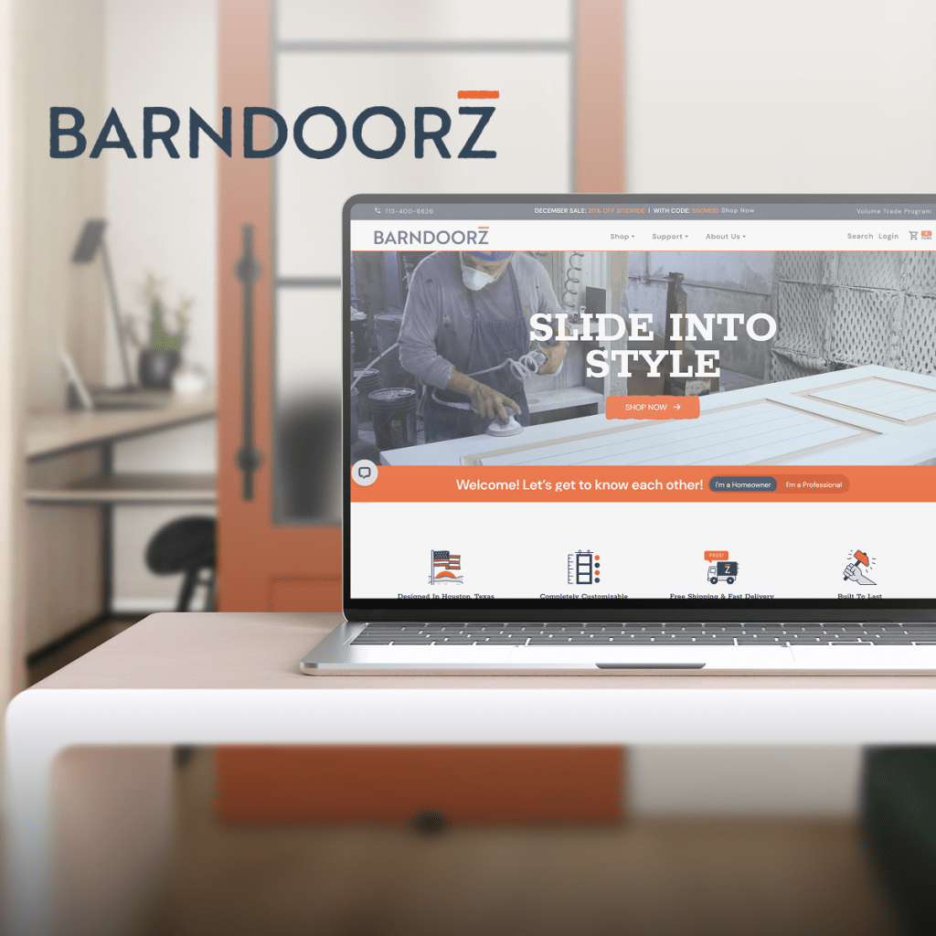 BarnDoorz received a complete UI/UX redesign featuring intuitive navigation, a modernized visual system, and improved product presentation. This update created a clearer, faster checkout path and is projected to increase conversion rates.