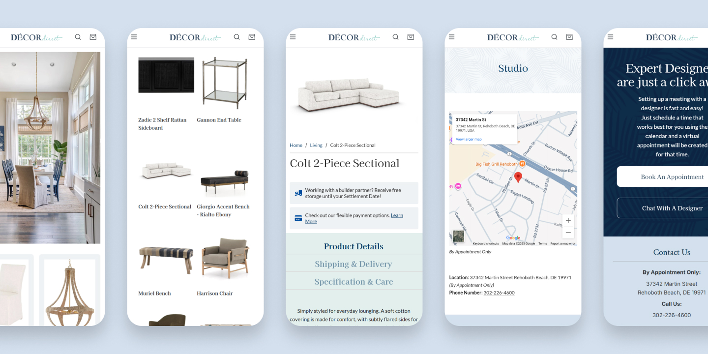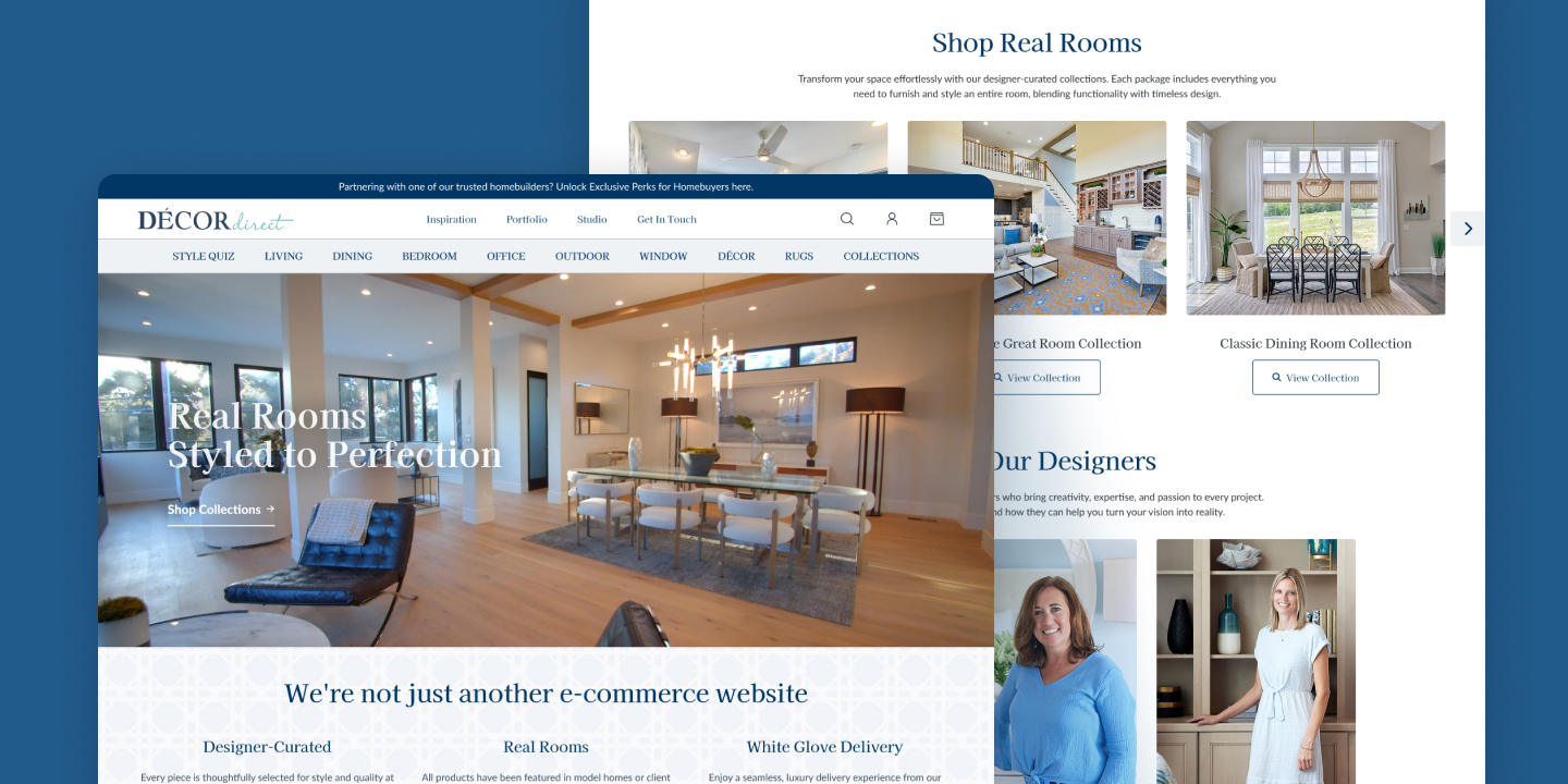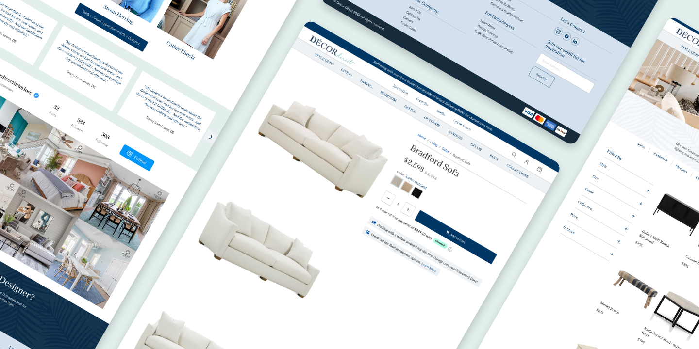 Decor Direct moved from a constrained BigCommerce build and a high-cost agency model to a Shopify store and partner that better match their budget and growth plans. The new site presents their model home inspired collections, builder workflows, and design services in a way that feels more like their studio experience and less like a generic catalog.