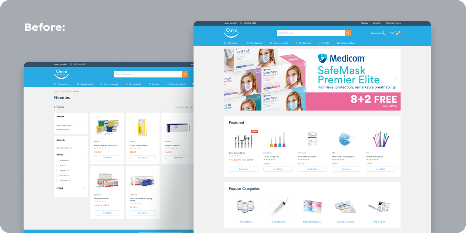 Before choosing AOC, Omni Dental Supply spent significant time evaluating several BigCommerce agency partners. Most were either too expensive, too rigid in their engagement structure, or provided overly generic recommendations that didn’t solve the real UX issues. They needed a practical partner who could execute a true UX/UI redesign driven by CRO insights, not a cosmetic facelift.