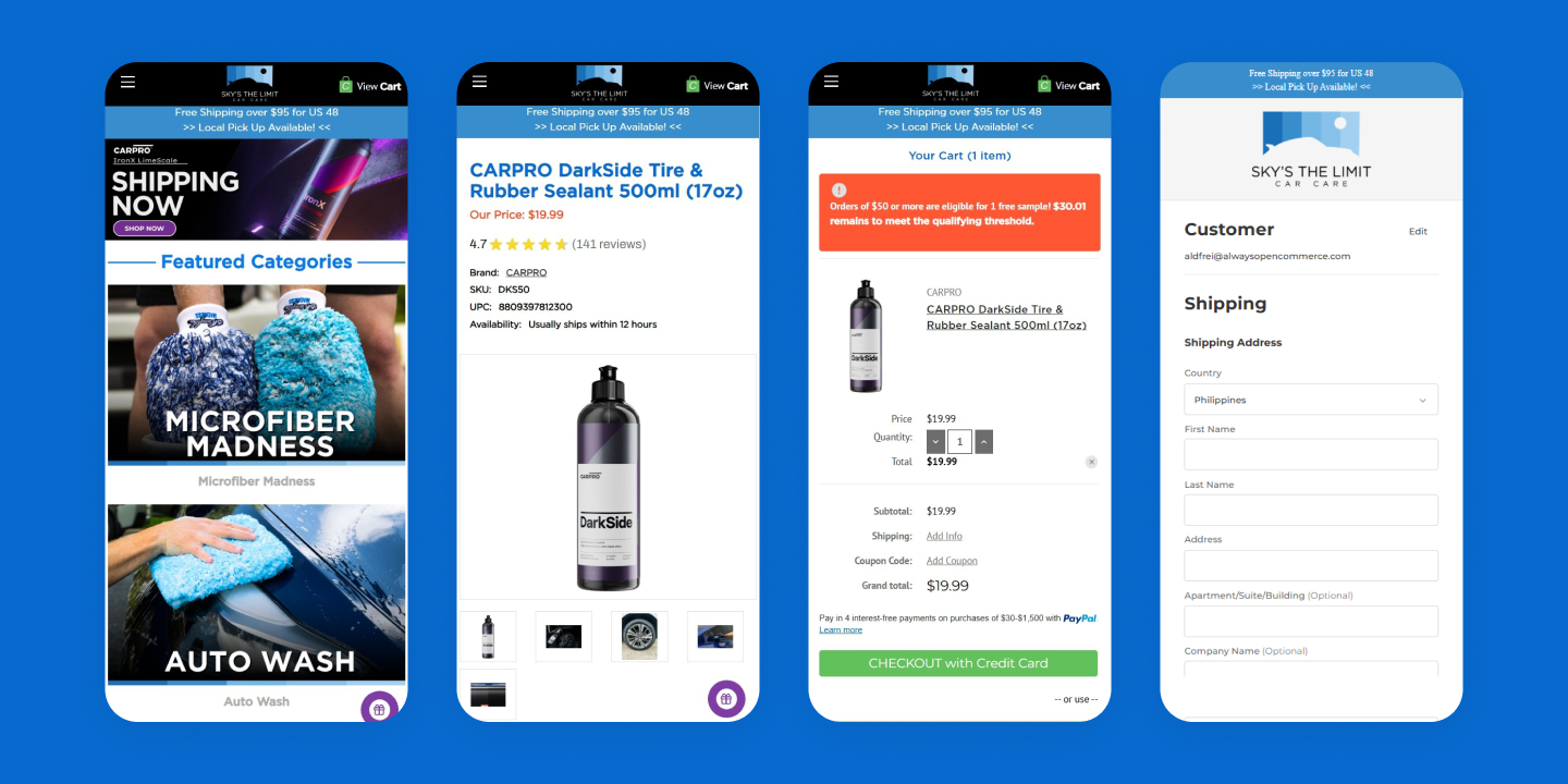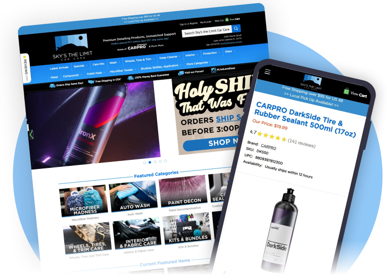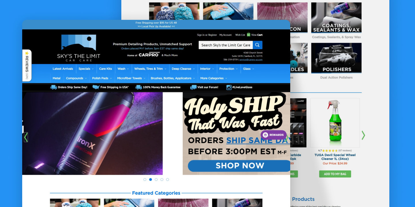 Sky’s the Limit Car Care now operates on a modern Cornerstone build that better matches the quality of the products and service they provide. The upgraded theme removed technical debt from the old version, reduced layout and script issues, and positioned the site for future optimization, promotion, and design improvements. Customers get a smoother, more reliable shopping experience, and the brand has a stable BigCommerce foundation they can confidently build on.