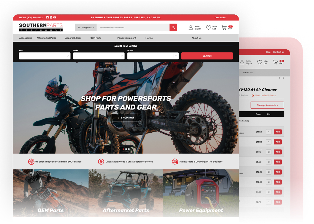 Southern Parts Warehouse needed more than just a facelift, they needed a modern ecommerce foundation: faster load times, cleaner product discovery paths, and a platform flexible enough to support new features and ongoing improvements.
