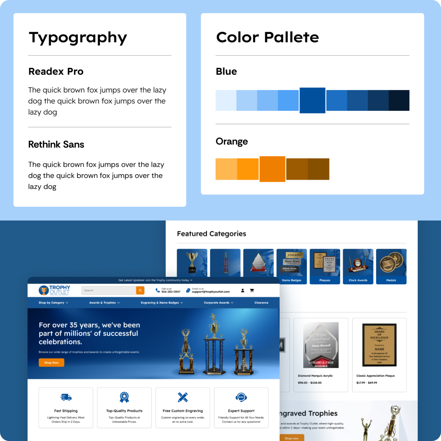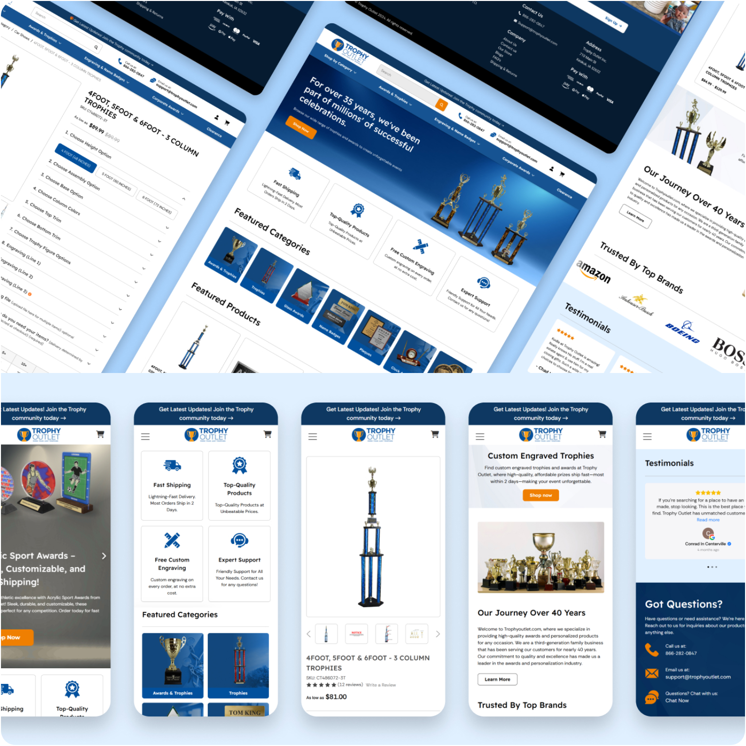 Trophy Outlet’s first attempt at a redesign was handled by an offshore company in India, but despite months of work, the results were disappointing: the UX remained confusing, the design felt dated, and the build lacked the polish and structure needed for a modern ecommerce brand. On top of that, their old BigCommerce Roots theme was outdated and limiting, especially for the product configurator that powers their personalized awards.
